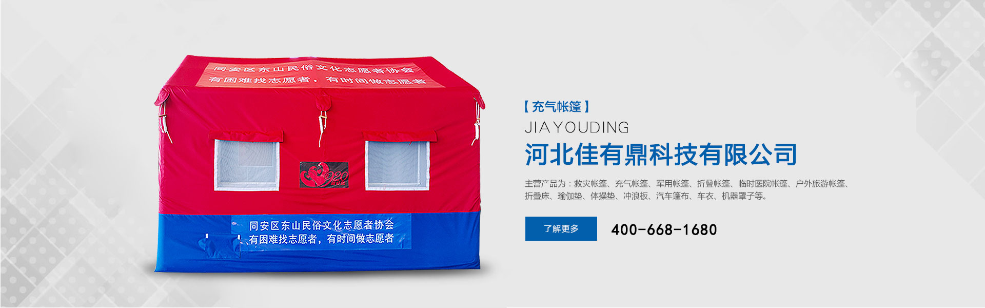 充氣帳篷屬于帳篷的一種采用結構力學的原理設計框架,利用氣體壓強特性將氣囊膨脹形成具有一定剛性的柱體,經過有機組合撐起帳篷的骨架。隨著采用的骨架材料的強力大小,可以設定帳篷的承重大小,采用高分子涂層...